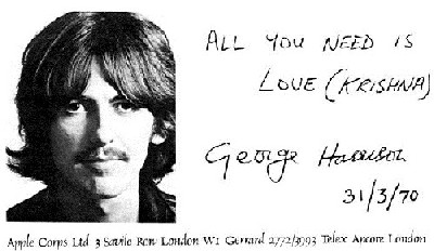 Todos procuram por KRISHNA. Alguns não percebem que estão, mas estão sim. KRISHNA é DEUS, a Fonte de tudo que existe, a Causa de tudo que existe, ou que venha a existir. Porque DEUS é ilimitado, ELE possui muitos Nomes. Alá, Buddha, Jeová, Rama: Todos são KRISHNA, todos são o MESMO. Deus não é abstrato; Ele possui os dois aspectos impessoal e pessoal na Sua personalidade que é SUPREMA, ETERNA, BEM-AVENTURADA, e plena de CONHECIMENTO. Do mesmo modo como uma única gota de água tem as mesmas qualidades de um oceano de água, nossa consciência possui as qualidades da consciência de Deus... mas por causa de nossa identificação e apego com a energia material (corpo físico, prazeres sensuais, posses materiais, ego etc.) nossa verdadeira CONSCIÊNCIA TRANSCENDENTAL ficou poluída, é igual a um espelho sujo que não pode refletir a imagem pura. Com muitas vidas, nossa associação com o TEMPORÁRIO cresceu. Este corpo impermanente, um saco de ossos e carne, é confundido com nosso verdadeiro eu, e aceitamos esta condição temporária como definitiva. Através de todas as eras, grandes SANTOS permaneceram como prova viva de que este estado não temporário, permanente da CONSCIÊNCIA DE DEUS pode ser revivido em todos Seres viventes. Cada alma é potencialmente divina. Krishna afirma no Bhagavad-gita: "Fixo no Eu, livre de toda contaminação material, o yogi alcança o estágio de perfeição mais elevado de felicidade em contato com a Consciência Suprema" (Bg. 6.28). YOGA (método científico para realização de DEUS (AUTO-REALIZAÇÃO)) é o método pelo qual purificamos nossa consciência, impedimos mais poluição, e chegamos ao estado de Perfeição, CONHECIMENTO pleno, BEM-AVENTURANÇA plena. Se existe um Deus, eu quero vê-Lo. Não tem sentido acreditar em algo sem prova, e Consciência de Krishna e meditação são métodos onde você pode obter realmente percepção de Deus. Você pode ver Deus de verdade, e ouvi-Lo, brincar com Ele. Pode parecer loucura, mas Ele existe realmente, de verdade com você. Existem muitos caminhos de yoga, Raja, Jñana, Hatha, Kriya, Karma, Bhakti, os quais são todos aclamados pelos MESTRES de cada método. SWAMI BHAKTIVEDANTA é como seu título diz, um BHAKTI-YOGI que segue o caminho da DEVOÇÃO. Por servir a DEUS com cada pensamento, palavra, e ATO, e por cantar SEUS Santos Nomes, o devoto desenvolve rapidamente Consciência de Deus. Por cantar Hare Krishna Hare Krishna a pessoa inevitavelmente chega à Consciência de KRISHNA. (A prova do pudim está em comê-lo!). Peço que aproveite este livro de KRISHNA, e penetre em seu entendimento. Também peço que você marque um compromisso para encontrar seu Deus agora, pelo processo de autoliberação do YOGA (UNIÃO) e DÊ UMA CHANCE PARA A PAZ (GIVE PEACE A CHANCE). TUDO O QUE VOCÊ PRECISA É DE AMOR (KRISHNA) HARI BOL. ALL YOU NEED IS LOVE (KRISHNA) HARI BOL. George Harrison Apple Corps Ltd (Londres - Inglaterra)