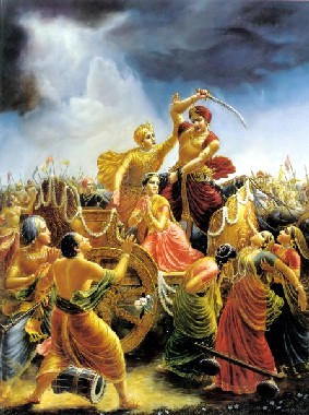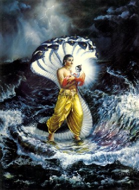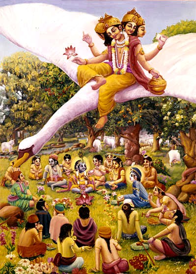 Uma vez, o mundo estava sobrecarregado por causa da força de defesa desnecessária de vários reis, que na realidade eram demônios porém se apresentavam como se fossem da classe nobre. Nessa época, o mundo inteiro ficou perturbado, e a deidade predominante desta Terra, conhecida como Bhumi, foi ver o Senhor Brahma para reclamar sobre as calamidades causadas pelos reis demoníacos. Bhumi assumiu a forma de uma vaca e se apresentou perante o Senhor Brahma com lágrimas nos olhos. Ela estava desolada e chorava para invocar a compaixão do senhor. Ela relatou a posição calamitosa da Terra, e depois de ouvir isso, o Senhor Brahma ficou muito compadecido, e partiu imediatamente para o oceano de leite, onde o Senhor Vishnu reside. O Senhor Brahma foi acompanhado por todos os semideuses liderados pelo Senhor Shiva, e Bhumi também os acompanhou. Quando chegou à praia do oceano de leite, o Senhor Brahma começou a acalmar o Senhor Vishnu que anteriormente salvou o planeta Terra ao assumir a forma transcendental de um javali.