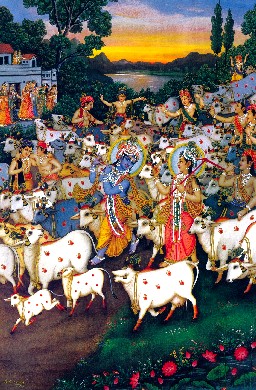 Quando as gopis viram o pequeno Krishna a brincar destemidamente no colo de Putana, correram bem rápido e O pegaram. Mãe Yashoda, Rohini e outras gopis mais velhas imediatamente realizaram rituais auspiciosos como segurar na cauda de uma vaca e andar em volta do corpo Dele. A criança foi completamente lavada com urina de vaca, e a poeira levantada pelos cascos das vacas foi jogada em todo Seu corpo. Tudo isso para salvaguardar o pequeno Krishna de futuros acidentes não-auspiciosos. Esse incidente nos dá uma indicação clara de como a vaca é importante para a família, sociedade e seres vivos em geral. O corpo transcendental de Krishna não precisa de nenhuma proteção, mas para nos instruir sobre a importância da vaca, o Senhor foi ensaboado com esterco de vaca, lavado com urina de vaca, e salpicado com a poeira levantada pelo andar das vacas.