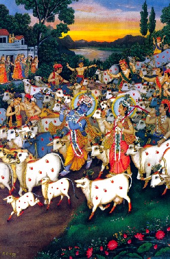 Como está afirmado no Bhagavad-gita, ye yatha mam prapadyante: Krishna é muito responsivo. Ele responde na proporção do avanço do devoto no serviço devocional. As gopis pensavam em Krishna com separação vinte e quatro horas por dia. Krishna também sempre pensava nas gopis, mãe Yashoda, Nanda Maharaja e nos residentes de Vrindavana, apesar de parecer que Ele estava longe deles. Ele pôde entender como eles estavam transcendentalmente aflitos, e por isso Ele queria mandar Uddhava imediatamente para dar a eles uma mensagem de consolo. Uddhava é descrito como a personalidade mais exaltada da dinastia Vrishni, quase igual a Krishna. Ele era um grande amigo, e porque era um estudante direto de Brihaspati, o professor e sacerdote dos planetas celestiais, ele era muito inteligente e perspicaz em decisão. Do ponto de vista intelectual, ele era altamente qualificado. Krishna, como era um amigo muito afetuoso de Uddhava, queria mandá-lo para Vrindavana justamente para estudar o altamente elevado serviço devocional extático praticado lá. Mesmo se a pessoa for altamente elevada em educação material e mesmo se for discípula de Brihaspati, ainda assim tem que aprender com as gopis e os residentes de Vrindavana como amar Krishna no mais alto degrau. Mandar Uddhava para Vrindavana com uma mensagem para os residentes de Vrindavana a fim de pacificá-los era um favor especial de Krishna para Uddhava. O nome do Senhor Krishna é Hari, significa aquele que leva embora toda a aflição das almas rendidas. O Senhor Chaitanya afirma que não pode haver, em tempo nenhum, uma adoração tão exaltada como a realizada pelas gopis. Como estava muito ansioso por causa do pesar das gopis, Krishna falou com Uddhava e pediu com polidez para ele ir a Vrindavana. Apertou a mão de Uddhava com Suas próprias mãos, e disse; "Meu querido amigo bondoso Uddhava, vá imediatamente para Vrindavana e tente pacificar Meu pai e mãe, Nanda Maharaja e Yashodadevi, e as gopis. Eles estão muito aflitos, como se sofressem de grandes doenças. Vá e entregue uma mensagem a eles. Espero que seus males sejam parcialmente aliviados. As gopis estão sempre absortas em pensamentos sobre Mim. Elas dedicaram corpo, desejo, vida e alma para Mim. Eu sou ansioso não só pelas gopis, mas por qualquer um que sacrifica sociedade, amizade, amor e confortos pessoais por Mim. É Meu dever proteger tais devotos exaltados. As gopis são as mais queridas. Elas sempre pensam em Mim de tal forma que permanecem dominadas e quase mortas de ansiedade devido a separação de Mim. Elas se mantêm vivas simplesmente por pensar que Eu voltarei muito em breve". Solicitado pelo Senhor Krishna, Uddhava partiu imediatamente em sua quadriga e levou a mensagem a Gokula. Ele se aproximou de Vrindavana no pôr-do-sol, quando as vacas voltavam para casa do campo de pastagem. Uddhava e sua quadriga foram cobertos pela poeira levantada pelos cascos das vacas. Ele viu os touros a correr atrás das vacas para acasalar; outras vacas com seus úberes cheios de leite, a correr atrás de seus bezerros para enchê-los de leite. Uddhava viu que a terra inteira de Vrindavana estava cheia de vacas brancas e seus bezerros. As vacas corriam de lá para cá por toda a Gokula, e ele podia ouvir o som da ordenha. Toda casa residencial em Vrindavana estava decorada para a adoração ao deus do sol e ao deus do fogo e para a recepção de convidados, vacas, brahmanas e semideuses. Cada lar estava iluminado com luz e incenso arranjados para a santificação. Por toda Vrindavana havia belos colares de flores, pássaros a voar e o som do zumbido das abelhas. Os lagos estavam cheios com flores de lótus e patos e cisnes. Uddhava entrou na casa de Nanda Maharaja e foi recebido como se fosse um representante de Vasudeva [Krishna]. Nanda Maharaja ofereceu-lhe um local e sentou junto com ele para perguntar sobre as mensagens de Krishna, Balarama e outros membros da família em Mathura. Ele pôde entender que Uddhava era um amigo muito confidencial de Krishna e portanto deve ter vindo com boas mensagens. "Meu querido Uddhava, como meu amigo Vasudeva aproveita a vida? Ele está livre agora da prisão de Kamsa, e agora está com seus amigos e filhos, Krishna e Balarama. Por isso, ele deve estar muito feliz. Diga-me sobre ele e seu bem estar. Nós também estamos muito contentes porque Kamsa, o demônio mais pecaminoso, agora está morto. Ele sempre tinha inveja da família dos Yadus, seus amigos e parentes. Agora por causa de suas atividades pecaminosas, ele está morto e se foi, junto com todos os seus irmãos". "Deixe-nos saber por favor se Krishna tem a lembrança de Seu pai e mãe e Seus amigos e companheiros em Vrindavana. Ele gosta de Se lembrar de suas vacas, Suas gopis, Sua colina Govardhana, Seu campo de pastagem em Vrindavana? Ou ele Se esqueceu de tudo isso agora? Há alguma possibilidade de Ele voltar para Seus amigos e parentes para que nós possamos novamente ver Sua bela face com Seu nariz arrebitado e olhos como o lótus? Nós lembramos como Ele nos salvou do fogo na floresta, como Ele nos salvou da grande serpente Kaliya no Yamuna, como Ele nos salvou de tantos outros demônios, e nós simplesmente pensamos o quanto somos gratos a Ele por nos dar proteção em tantas situações perigosas. Meu querido Uddhava, quando pensamos na bela face e olhos de Krishna e Suas diferentes atividades aqui em Vrindavana, ficamos tão extasiados que todas nossas atividades cessam. Nós simplesmente pensamos em Krishna, como Ele costumava sorrir e como Ele olhava para nós. Quando vamos para a margem do Yamuna e outros lagos de Vrindavana ou perto da colina Govardhana ou o campo de pastagem, nós vemos que as impressões das pegadas de Krishna ainda estão na superfície da terra. Nós nos lembramos Dele a tocar nesses lugares, porque Ele os visitava constantemente. Quando Sua aparição dentro de nossas mentes se torna manifesta, ficamos imediatamente absortos no pensamento Dele"