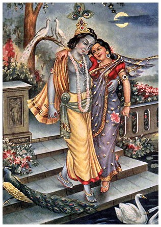 Quando o rei Bhishmaka ouviu que Krishna e Balarama vieram, ele Os convidou para assistirem à cerimônia de casamento de sua filha. Imediatamente ele organizou a recepção Deles, junto com Seus soldados, numa casa de jardim adequada. Como era o costume Védico, o rei ofereceu a Krishna e Balarama mel e roupas limpas novas. Ele era hospitaleiro não somente com Krishna e Balarama e reis como Jarasandha, mas também recebia muitos outros reis e príncipes de acordo com seu respectivo poder pessoal, idade e posses materiais. Por curiosidade e avidez, as pessoas de Kundina se reuniram perante Krishna e Balarama e começaram a beber o néctar da beleza Deles. Com olhos cheios de lágrimas, ofereceram a Eles seus respeitos silenciosos. Eles estavam muito contentes, pois consideravam o Senhor Krishna como o par perfeito para Rukmini. Eles estavam tão ansiosos para unir Krishna e Rukmini que começaram a orar para a Personalidade de Deus: "Meu querido Senhor, se nós executamos quaisquer atividades piedosas que Você ficou satisfeito, bondosamente seja misericordioso conosco e aceite a mão de Rukmini". Parece que Rukmini era uma princesa muito popular, e todos os cidadãos, por causa de seu amor intenso por ela, oraram pela melhor fortuna dela. Nesse meio tempo, Rukmini, muito bem vestida e protegida pelos guarda-costas, saiu do palácio para visitar o templo de Ambika, a deusa Durga. Adoração à Deidade do templo existe desde o começo da cultura Védica. Existe uma classe de pessoas descrita no Bhagavad-gita como o veda-vada-rata; eles só acreditam nas cerimônias ritualísticas Védicas, e não na adoração no templo. Essas pessoas tolas podem notar aqui que apesar do casamento entre Krishna e Rukmini acontecer mais de 5.000 anos atrás, houve arranjos para adoração no templo. No Bhagavad-gita o Senhor diz, yanti deva-vrata devan: "Os adoradores dos semideuses alcançam as moradas dos semideuses". Havia muitas pessoas que adoravam os semideuses e muitas que adoravam diretamente a Suprema Personalidade de Deus. O sistema de adoração aos semideuses era direcionado principalmente ao Senhor Brahma, Senhor Shiva, Senhor Ganesha, ao deus do Sol e à deusa Durga. O Senhor Shiva e a deusa Durga eram adorados até mesmo pelas famílias da nobreza; outros semideuses menores eram adorados por pessoas inferiores simplórias. No que diz respeito aos brahmanas e Vaishnavas, eles simplesmente adoram o Senhor Vishnu, a Suprema Personalidade de Deus. No Bhagavad-gita a adoração aos semideuses é condenada, mas não proibida; lá está afirmado claramente que a classe de pessoas menos inteligentes adora diferentes tipos de semideuses para benefício material. Por outro lado, mesmo apesar de Rukmini ser a deusa da fortuna, ela entrou no templo da deusa Durga porque a deidade da família era adorada lá. No Srimad Bhagavatam está afirmado que à medida que Rukmini prosseguia em direção ao templo da deusa Durga, dentro do seu coração ela sempre pensava nos pés de lótus de Krishna. Portanto, quando Rukmini foi ao templo não foi com a intenção de uma pessoa comum, que vai para mendigar benefícios materiais; seu único alvo era Krishna. Quando as pessoas vão a um templo de um semideus, o objetivo verdadeiro é Krishna, desde que é Ele quem dá poder aos semideuses para proverem benefícios materiais.