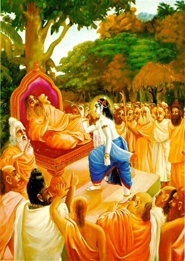 O Rei Parikshit ouvia as narrações dos passatempos do Senhor Krishna e Senhor Balarama de Shukadeva Goswami. Esses passatempos são todos transcendentalmente agradáveis de ouvir, e Maharaja Parikshit se dirigiu a Shukadeva Goswami como se segue: "Meu querido senhor, a Suprema Personalidade de Deus é quem concede tanto liberação quanto amor de Deus simultaneamente. Qualquer um que se torna um devoto do Senhor automaticamente alcança liberação sem ter que fazer uma tentativa separada. O Senhor é ilimitado, e assim, Seus passatempos e atividades para criação, manutenção e destruição da manifestação cósmica inteira são ilimitados. Eu por isso desejo ouvir sobre Seus outros passatempos os quais você pode não ter falado ainda. Meu querido mestre, as almas condicionadas dentro deste mundo material são frustradas na procura do prazer da felicidade derivada da satisfação sensual. Tais desejos por desfrute material sempre perfuram o coração das almas condicionadas. Mas eu estou realmente na experiência como os tópicos transcendentais dos passatempos do Senhor Krishna podem aliviar a pessoa do estado de ser afetada por tais atividades materiais de prazer sensual. Eu penso que nenhuma pessoa inteligente pode rejeitar esse método de ouvir os passatempos transcendentais do Senhor repetidamente; simplesmente por ouvir, a pessoa pode permanecer sempre mergulhada no prazer transcendental. Assim a pessoa não ficará atraída ao prazer sensual material". Nessa declaração, Maharaja Parikshit usou duas palavras importantes: vishannah e visheshajñah: vishannah significa "melancólico". As pessoas materialistas inventam muitas formas e meios para se tornarem plenamente satisfeitas, mas na realidade elas permanecem melancólicas. O ponto pode ser levantado que às vezes aqueles que são transcendentalistas permanecem melancólicos. Parikshit Maharaja usou, entretanto, a palavra visheshajñah. Existem dois tipos de transcendentalistas, chamados os impersonalistas e os personalistas. Visheshajñah se refere aos personalistas, que estão interessados em variedade transcendental. Os devotos ficam em júbilo ao ouvirem as descrições das atividades pessoais do Supremo Senhor, enquanto os impersonalistas, que estão mais na realidade atraídos ao aspecto impessoal do Senhor, são só atraídos superficialmente pelas atividades pessoais do Senhor. Assim, apesar de entrarem em contato com os passatempos do Senhor, os impersonalistas não realizam plenamente o benefício a ser derivado, e por isso eles permanecem em exatamente a mesma posição melancólica, por causa de atividade lucrativa, com os materialistas. O Rei Parikshit continuou: "A capacidade de falar pode ser perfeita somente por descrever as qualidades transcendentais do Senhor. A capacidade de trabalhar com as próprias mãos pode ser bem sucedida somente quando a pessoa se dedica ao serviço do Senhor com essas mãos. Similarmente, a mente da pessoa pode ser acalmada somente quando ela simplesmente pensa sobre Krishna em Consciência de Krishna plena. Isso não significa que a pessoa tem que ser muito introspectiva, mas simplesmente tem que entender que Krishna, a Verdade Absoluta, é todo-penetrante, pelo Seu aspecto localizado como Paramatma. Se simplesmente a pessoa puder pensar que Krishna, como Paramatma, está em toda parte, mesmo dentro do átomo, assim a pessoa pode tornar perfeita a função de pensar, sentir e desejar da sua mente. O devoto perfeito não enxerga o mundo material como ele aparece para os olhos materiais, e sim ele vê em toda parte a presença de seu Senhor adorável em Seu aspecto Paramatma". Maharaja Parikshit continuou a dizer que a função do ouvido pode ser perfeita simplesmente pela dedicação em ouvir as atividades transcendentais do Senhor. Ele disse mais ainda que a função da cabeça pode ser plenamente utilizada quando a cabeça está dedicada a se prostrar perante o Senhor e Seu representante. Que o Senhor está representado dentro do coração de todos é um fato, e portanto os devotos altamente avançados oferecem seus respeitos a cada ser vivo, pois consideram o corpo como um templo do Senhor. Mas não é possível para todos os homens virem a esse estágio de vida imediatamente, porque esse estágio é para o devoto de primeira classe. O devoto de segunda classe pode considerar os Vaishnavas, ou devotos do Senhor, como representantes de Krishna, e o devoto que é justamente iniciante, o neófito ou devoto de terceira classe, pode prostrar sua cabeça perante a Deidade no templo e perante o mestre espiritual, que é a manifestação direta da Suprema Personalidade de Deus. No estágio neófito, no estágio intermediário, ou no plenamente avançado estágio perfeito, a pessoa pode tornar a função da cabeça perfeita por se prostrar perante o Senhor ou Seu representante. Similarmente, ela pode tornar perfeita a função dos olhos por ver o Senhor e Seu representante. Dessa forma, cada um pode elevar as funções das diferentes partes do seu corpo ao estágio de perfeição mais elevado simplesmente por dedicá-las no serviço do Senhor ou Seu representante. Se alguém é capaz de fazer nada mais, ele pode simplesmente se prostrar perante o Senhor e Seu representante e beber charanamrita, a água que lavou os pés de lótus do Senhor ou Seu devoto. Ao ouvir essas declarações de Maharaja Parikshit, Shukadeva Goswami ficou dominado pelo êxtase devocional porque o Rei Parikshit avançou na compreensão da filosofia Vaishnava. Shukadeva Goswami já estava dedicado a descrever as atividades do Senhor, e quando foi perguntado por Maharaja Parikshit para descrevê-las mais ainda, ele continuou com grande prazer a narrar o Srimad Bhagavatam. Havia um brahmana muito bom amigo do Senhor Krishna. Por ser um brahmana perfeito, ele era muito elevado em conhecimento transcendental, e por causa do seu conhecimento avançado, ele não era nenhum pouco apegado a desfrute material. Por isso e