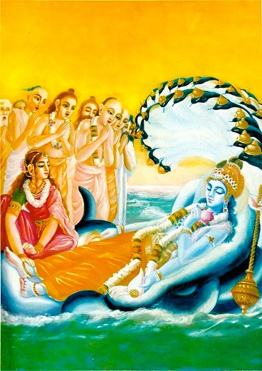 É um costume Védico que os membros mais jovens da família devem oferecer respeitos às pessoas mais velhas cada manhã. As crianças ou os discípulos especialmente devem oferecer seus respeitos aos pais ou ao mestre espiritual na manhã. Em cumprimento a esse princípio Védico, o Senhor Krishna e Balarama costumavam oferecer Suas reverências a Seu pai Vasudeva, junto com suas esposas. Um dia, depois que voltaram das realizações de sacrifício em Kurukshetra, quando o Senhor Krishna e Balarama foram oferecer Seus respeitos a Vasudeva, Vasudeva aproveitou a oportunidade para apreciar a posição exaltada dos dois irmãos. Vasudeva teve a oportunidade de entender a posição de Krishna e Balarama dos grandes sábios que estavam reunidos na arena de sacrifício. Ele não somente ouviu dos grandes sábios, mas em muitas ocasiões ele realmente experimentou que Krishna e Balarama não eram seres humanos ordinários, mas eram muito extraordinários. Assim ele acreditou nas palavras dos sábios que seus filhos Krishna e Balarama eram a Suprema Personalidade de Deus. Com fé firme em seus filhos, ele falou com Eles assim: "Meu querido Krishna, Você é a Suprema Personalidade de Deus sac-cid-ananda-vigraha, e meu querido Balarama, Você é Sankarshana, o mestre de todos os poderes místicos. Eu entendi agora que Vocês são eternos. Ambos Vocês são transcendentais a esta manifestação material e à sua causa, a Pessoa Suprema Maha-Vishnu. Vocês são o controlador original de tudo. Vocês são o repouso desta manifestação cósmica. Vocês são seu criador, e Vocês também são seus ingredientes criativos. Vocês são o mestre desta manifestação cósmica, e na realidade esta manifestação é criada para Seus passatempos somente". "As diferentes fases materiais desde o início até o fim do cosmos manifesto sob diferentes fórmulas do tempo também são Você mesmo, porque Você é tanto a causa quanto o efeito desta manifestação. As duas características deste mundo material, o predominante e o predominado, também são Você, e Você é o supremo controlador transcendental que está acima delas. Portanto, Você está além da percepção de nossos sentidos. Você é a alma suprema, não nascida e imutável. Você não é afetado pelos seis tipos de transformações que ocorrem no corpo material. As variedades maravilhosas deste mundo material também são criadas por Você, e Você entrou como a Superalma em cada ser vivo e mesmo dentro do átomo. Você é o mantenedor de tudo". "A força vital que age como o princípio da vida em tudo e a força criativa derivada dela não agem independentemente, mas dependem de Você, a Pessoa Suprema por trás dessas forças. Sem a Sua vontade, elas não podem trabalhar. Energia material não tem cognição. Ela não pode agir independentemente sem ser agitada por Você. Porque a natureza material é dependente de Você, os seres vivos só podem tentar agir. Mas sem Sua sanção e vontade, eles não podem executar nada ou alcançar o resultado que desejam". "A energia original é somente uma emanação de Você. Meu querido Senhor, o brilho do luar, o calor do fogo, os raios do Sol, o brilho das estrelas, e o relâmpago elétrico que se manifesta como muito poderoso, bem como a gravidade das montanhas, a energia da terra e a qualidade de seu sabor - todos são diferentes manifestações de Você. O sabor puro da água e a força vital que mantém toda vida também são características da Sua Divindade. A água e seu sabor também são Você mesmo". "Meu querido Senhor, apesar das forças dos sentidos, o poder mental de pensar, desejar e sentir, e a força, movimento e crescimento do corpo parecerem ser executados por diferentes movimentos dos ares dentro do corpo, eles são todos ultimamente manifestações da Sua energia. A vasta extensão do espaço sideral repousa em Você mesmo. A vibração do céu, seu trovão, o som supremo omkara e o arranjo das diferentes palavras para distinguir uma coisa da outra são representações simbólicas de Você. Tudo é Você mesmo. Os sentidos, os controladores dos sentidos, os semideuses, e a aquisição do conhecimento que é o propósito dos sentidos, bem como o assunto do conhecimento - tudo é Você mesmo. A resolução da inteligência e a memória afiada do ser vivo também são Você mesmo. Você é o princípio egotista na ignorância que é a causa deste mundo material, o princípio egotista da paixão que é a causa dos sentidos, e o princípio egotista da bondade que é a origem das diferentes deidades controladoras deste mundo material. A energia ilusória, ou maya, que é a causa da transmigração perpétua da alma condicionada de uma forma à outra, é Você mesmo". "Minha querida Suprema Personalidade de Deus, Você é a causa original de todas as causas, exatamente como a terra é a causa original de diferentes tipos de árvores, plantas e variedades similares de manifestação. Como a terra é representada em tudo, assim Você está presente em toda esta manifestação material como a Superalma. Você é a suprema causa de todas as causas, o princípio eterno. Tudo é, de fato, uma manifestação de Sua energia. As três qualidades da natureza material - sattva, rajas e tamas - e o resultado de sua interação, estão ligadas a Você pela Sua agência de yogamaya. Elas são supostas de serem independentes, mas na realidade a energia material total repousa em Você, a Superalma. Porque Você é a causa suprema de tudo, as interações da manifestação material - nascimento, existência, crescimento, transformação, deterioração e aniquilação - estão ausentes em Você mesmo. Sua energia suprema, yogamaya, age numa variedade de manifestações, mas porque yogamaya é Sua energia, Você está portanto presente em tudo". No Bhagavad-gita, esse fato é explicado muito bem no Nono Capítulo, onde o Senhor diz, "Na Minha forma impessoal Eu estou espalhado por toda a energia material;