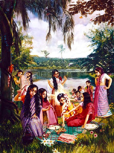 No Srimad Bhagavatam, os passatempos do Senhor são narrados, e a narração é sistematicamente relatada por Srila Shukadeva Goswami. Assim, o assunto da matéria é atraente para todas as classes de pessoas, inclusive as que procuram liberação e aquelas que procuram se tornar um com o todo supremo. Em sânscrito, o papagaio também é conhecido como shuka. Quando o fruto maduro é cortado pelos bicos vermelhos desses pássaros, seu doce sabor é aumentado. O fruto Védico que é maduro e suculento em conhecimento é falado pelos lábios de Srila Shukadeva Goswami, que é comparado ao papagaio não por sua habilidade de recitar o Bhagavatam exatamente como o ouviu de seu sábio pai, mas por sua habilidade de apresentar a obra de uma forma que atrai todas as classes de homens. A matéria é assim apresentada através dos lábios de Srila Shukadeva Goswami para que qualquer ouvinte [leitor] sincero que ouça submissamente possa saborear imediatamente os sabores que são distintos dos sabores pervertidos do mundo material. O fruto maduro não cai de súbito do planeta mais elevado de Krishnaloka. Em vez disso, ele descende cuidadosamente através da corrente de sucessão discipular sem alteração ou perturbação. Pessoas tolas que não estão na sucessão discipular transcendental cometem grandes absurdos ao tentarem entender o rasa transcendental mais elevado conhecido como dança rasa sem seguir os passos de Shukadeva Goswami, que apresenta o fruto muito cuidadosamente através dos estágios de realização transcendental. A pessoa tem que ser inteligente o suficiente para conhecer a posição do Srimad Bhagavatam por considerar personalidades como Shukadeva Goswami, que trata da matéria tão cuidadosamente. Esse processo de sucessão discipular da escola Bhagavata sugere que no futuro também o Srimad Bhagavatam seja compreendido de uma pessoa que seja realmente um representante de Srila Shukadeva Goswami. Uma pessoa profissional que faz o negócio de recitar o Bhagavatam ilegalmente com certeza não é representante de Shukadeva Goswami. O negócio dessa pessoa é apenas para ganhar o seu sustento. Por isso que se deve evitar ouvir palestras de tais pessoas profissionais. Essas pessoas geralmente vão para a parte mais confidencial da literatura sem passar pelo processo gradual de entendimento desse assunto grave. Eles geralmente saltam na matéria da dança rasa, que é mal-entendida pela classe de homens tolos. Alguns deles acham que isso é imoral, enquanto outros tentar encobrir isso com suas próprias interpretações estúpidas. Eles não têm nenhum desejo de seguir os passos de Srila Shukadeva Goswami.