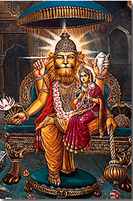 Todas as Glórias a Sri Guru e Sri Gauranga Nitai Gaura Hari Bol ito nrsimhah parato nrsimho itah – aqui; nrsimhah – Senhor Nrisimha; yatah yatah ; em qualquer lugar; yami – eu vou; tatah – lá; nrsimhah - Senhor Nrisimha; bahir – externamente; nrsimhah - Senhor Nrisimha; hrdaye – no coração; nrsimham - Senhor Nrisimha; adim – a origem; saranam – o refúgio supremo; prapadye – eu me rendo. "O Senhor Nrisimha está lá, o Senhor Nrisimha está aqui. Aonde quer que eu vá, o Senhor Nrisimha reside. Ele está dentro de nossos corações bem como fora também. Eu me rendo ao Senhor Nrisimha, a origem e o refúgio supremo de tudo". (Sri Sri Prapanna-jivanamrtam - 7.9)
